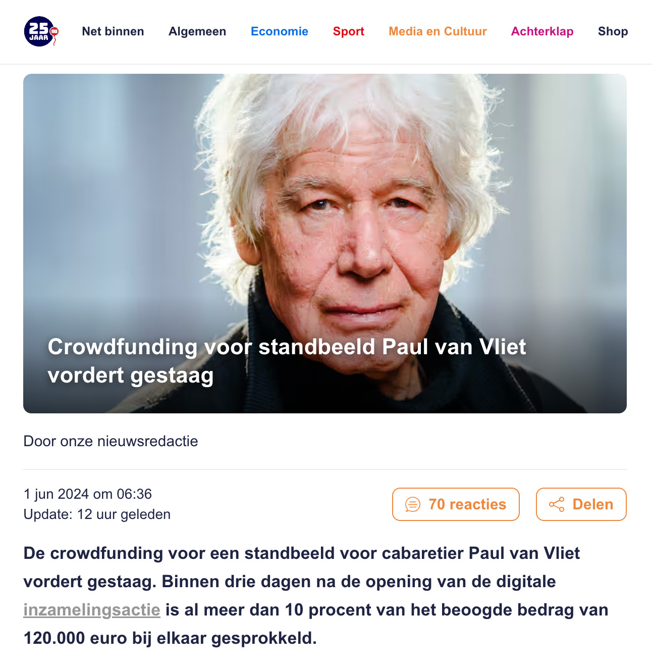 Lees hier het gehele artikel – https://www.nu.nl/entertainment/6315101/crowdfunding-voor-standbeeld-paul-van-vliet-vordert-gestaag.html